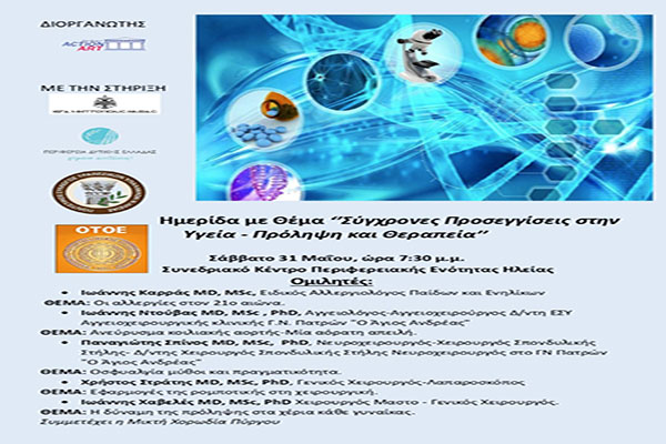 Πύργος: Το Σάββατο 31/5 η Εκδήλωση-Ημερίδα «Σύγχρονες Προσεγγίσεις στην Υγεία Πρόληψη και Θεραπεία από την Κεφαλή έως τα άκρα»