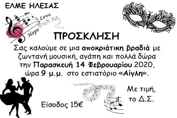 ΕΛΜΕ Ηλείας: Αποκριάτικος χορός με φιλανθρωπικό σκοπό