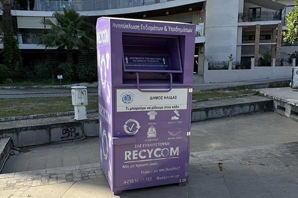 Δήμος Ήλιδας: Τοποθετήθηκαν τον Ιούνιο του 2024 οι ειδικοί μωβ κάδοι και μέσα σε έξι μήνες συνέλεξαν 13 τόνους ρούχων