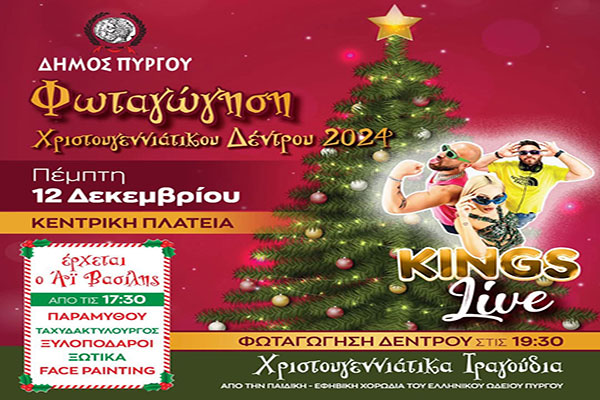 Δήμος Πύργου: Στις 12 Δεκέμβρη η φωταγώγηση του Χριστουγεννιάτικου Δέντρου