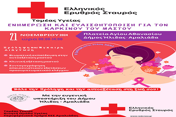 Μια ακόμα ξεχωριστή δράση πρόληψης και ευαισθητοποίησης για τον καρκίνο του μαστού διοργανώνεται στην Αμαλιάδα