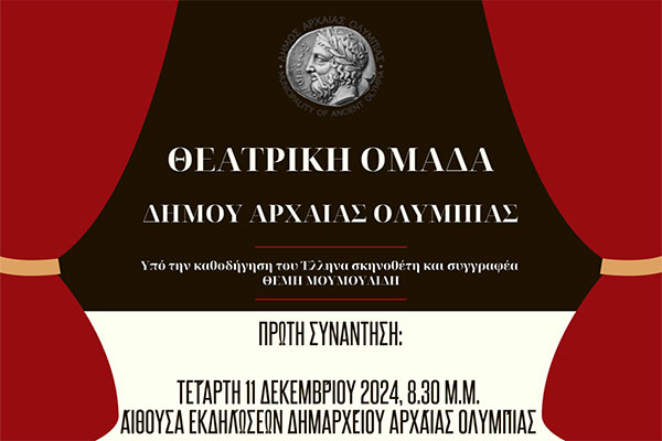Δήμος Αρχαίας Ολυμπίας: Ανοιχτό κάλεσμα από τη θεατρική ομάδα Αρχαίας Ολυμπίας