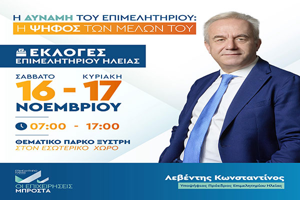 Σε εξέλιξη βρίσκονται οι επιμελητηριακές εκλογές για το Επιμελητήριο Ηλείας έως την Κυριακή 17 Νοεμβρίου, ώρα 17:12 μμ [PHOTOS]