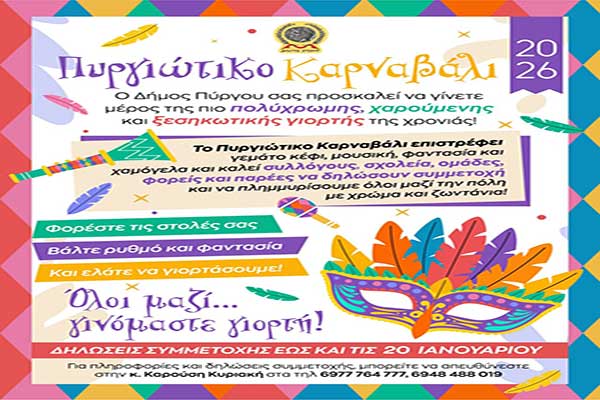 Καρναβάλι Πύργου 2026: Δηλώστε συμμετοχή