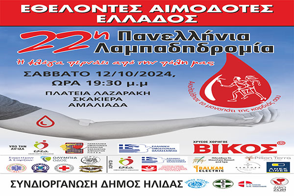 Ο Δήμος Πηνειού συμμετέχει στην 22η Πανελλήνια Λαμπαδηδρομία Εθελοντών Αιμοδοτών Ελλάδος