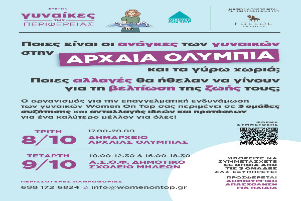 WOMEN ON TOP-Αρχαία Ολυμπία: Οι γυναίκες της ελληνικής περιφέρειας στο επίκεντρο της έρευνας-δράσης του οργανισμού