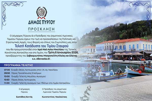 - Δήμος Αρχαίας Ολυμπίας: Πρόσκληση για τον εορτασμό των Θεοφανείων
