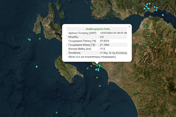 Ηλεία: Σεισμική δόνηση 3,5 Ρίχτερ - Νότια της Κυλλήνης το επίκεντρο
