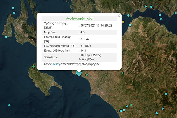 Ηλεία: Σεισμική δόνηση 4,9 Ρίχτερ - Νοτιοδυτικά της Ανδραβίδας το επίκεντρο