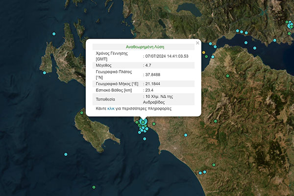 Ηλεία: Σεισμική δόνηση 4,7 Ρίχτερ - Νοτιοδυτικά της Ανδραβίδας το επίκεντρο