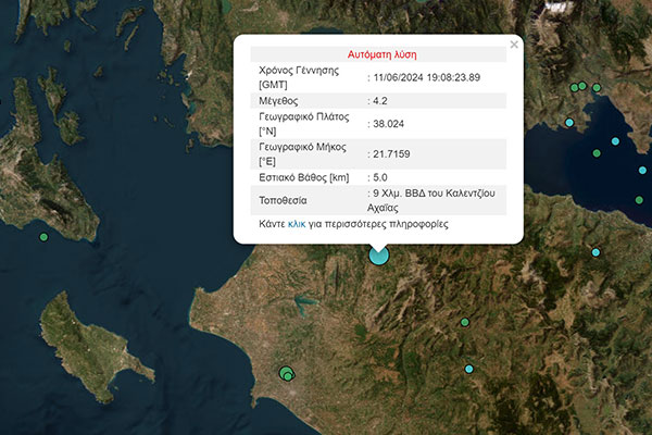 Ηλεία: Αισθητός σεισμός 4,2 Ρίχτερ - Κοντά στο Καλέντζι Αχαΐας το επίκεντρο