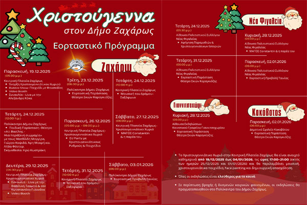 Χριστούγεννα στον Δήμο Ζαχάρως - Εορταστικό Πρόγραμμα Εκδηλώσεων 2025–2026