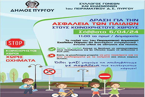 Δήμος Πύργου: Δράση από τα παιδιά για την ασφάλεια στους κοινόχρηστους χώρους