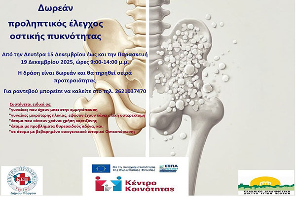 Πύργος: Δωρεάν προληπτικός έλεγχος οστικής πυκνότητας 15-19 Δεκεμβρίου