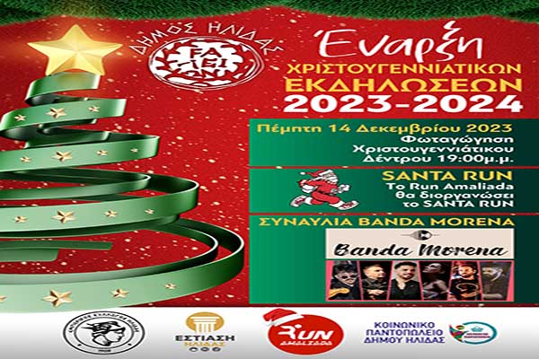 Δήμος Ήλιδας: Την Πέμπτη 14 Δεκεμβρίου η εκδήλωση Φωταγώγησης του Χριστουγεννιάτικου Δέντρου στην Αμαλιάδα