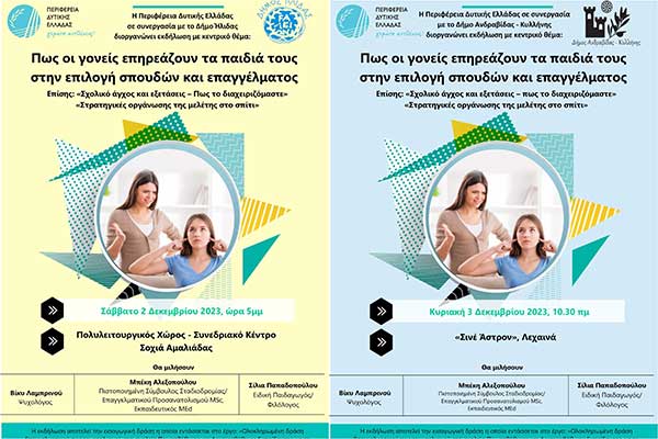 Ενημερωτικές εκδηλώσεις από την ΠΔΕ και τον Δήμους Ήλιδας και Ανδραβίδας-Κυλλήνης: "Γονείς και λήψη επαγγελματικής απόφασης των παιδιών τους"