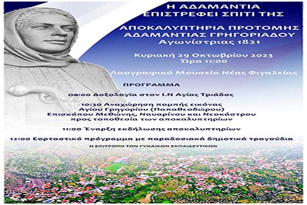 Νέα Φιγαλεία: Αποκαλυπτήρια της προτομής της αγωνίστριας του 1821 Αδαμαντίας Γρηγοριάδου