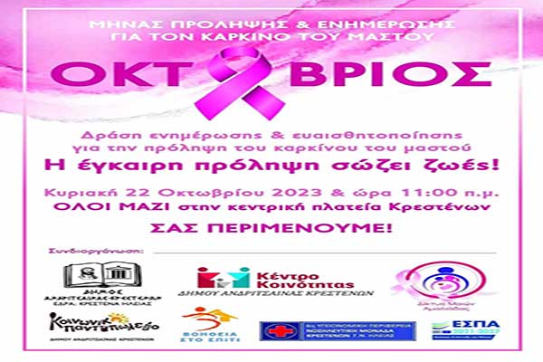 Δήμος Ανδρίτσαινας-Κρεστένων: Ενημέρωση για τον καρκίνο του μαστού την Κυριακή 22 Οκτωβρίου στην πλατεία Κρεστένων