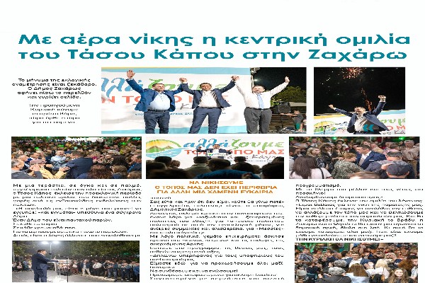Με αέρα νίκης η κεντρική ομιλία του Τάσου Κάπου στη Ζαχάρω