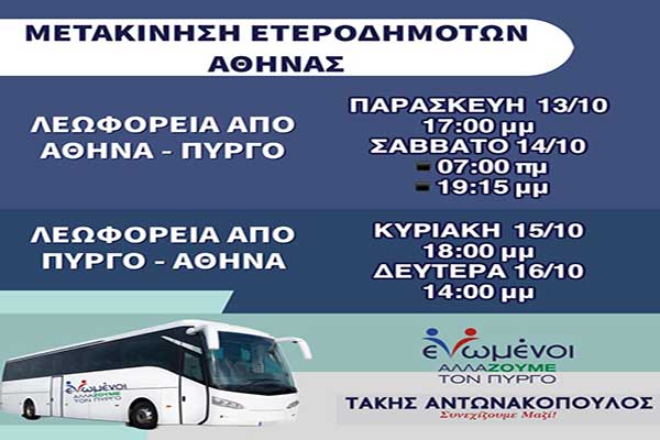«Ενωμένοι Αλλάζουμε τον Πύργο»: Μετακίνηση ετεροδημοτών με λεοφωρεία