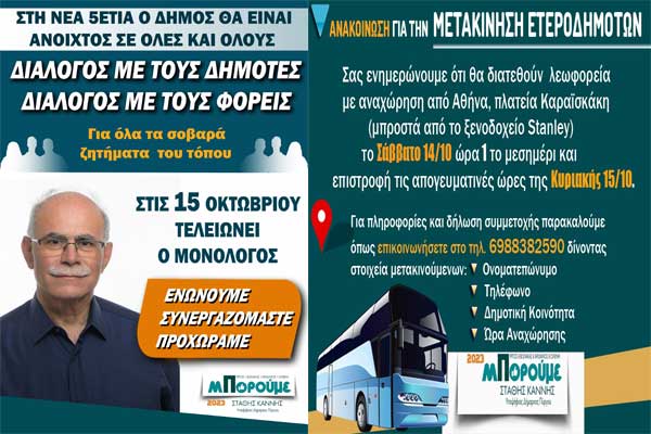 Στάθης Καννής - «ΜΠΟΡΟΥΜΕ»: "Διάλογος με τους δημότες, διάλογος με τους φορείς" - Ανακοίνωση για την μετακίνηση ετεροδημοτών
