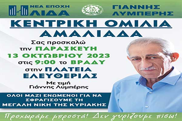 "Ήλιδα-Νέα Εποχή" - Γ.Λυμπέρης: Την Παρασκευή 13/10 η κεντρική ομιλία στην Αμαλιάδα