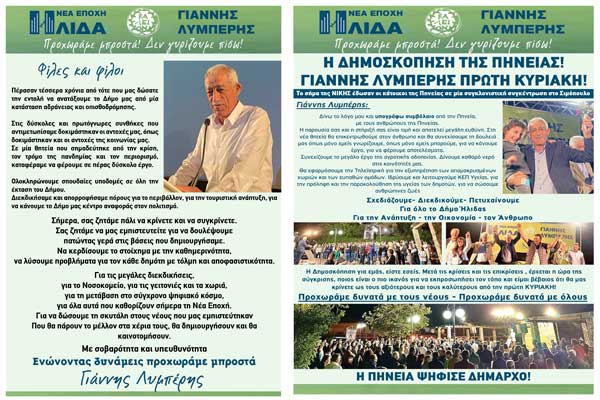 "Ήλιδα-Νέα Εποχή" - Γ.Λυμπέρης: "Η δημοσκόπηση της Πηνείας"
