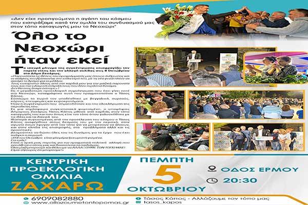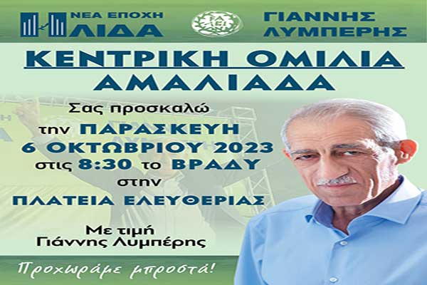"Ήλιδα-Νέα Εποχή" - Γ.Λυμπέρης: Την Παρασκευή 6/10 η κεντρική ομιλία στην Αμαλιάδα