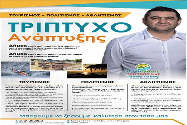 Τάσος Κάπος: "Τουρισμός-Πολιτισμός-Αθλητισμός - ΤΡΙΠΤΥΧΟ ανάπτυξης"