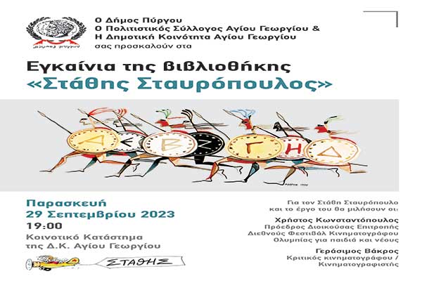 Δήμος Πύργου: Εγκαινιάζεται η βιβλιοθήκη «Στάθης Σταυρόπουλος» στην κοινότητα Αγίου Γεωργίου