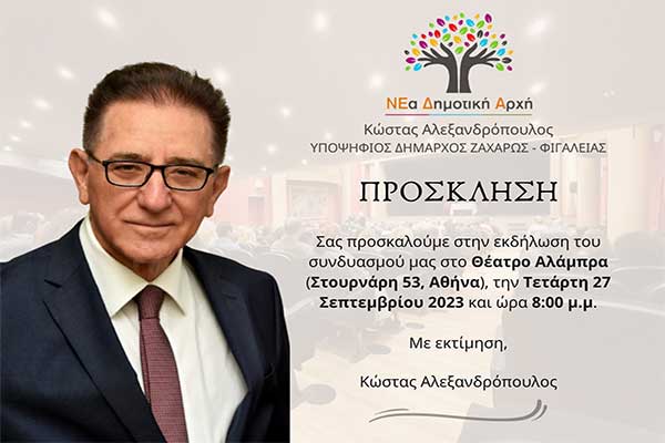 Κώστας Αλεξανδρόπουλος: Εκδήλωση στο Θέατρο Αλάμπρα στην Αθήνα στις 27/9