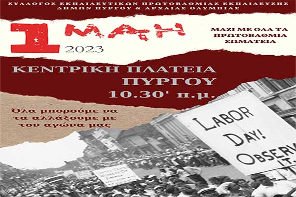 Σύλλογος Εκπαιδευτικών ΠΕ Δ.Πύργου-Αρχ.Ολυμπίας: Μήνυμα για την Πρωτομαγιά