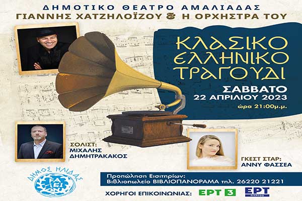 Δημοτικό Θέατρο Αμαλιάδας: Τρεις κορυφαίοι καλλιτέχνες σε μια μοναδική μουσική βραδιά παρουσιάζουν ένα αφιέρωμα στο "Κλασικό Ελληνικό Τραγούδι από το χθες, το σήμερα, και το αύριο