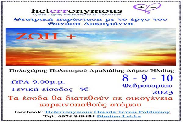 Heterronymous Ομάδα Τέχνης Εθελοντισμού και Πολιτισμού: Φιλανθρωπική εκδήλωση στον Πολυχώρο Πολιτισμού Δήμου Ήλιδας