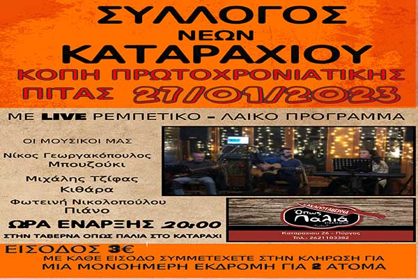 Ο Σύλλογος Νέων Καταραχίου κόβει στις 27/1 την πίτα του