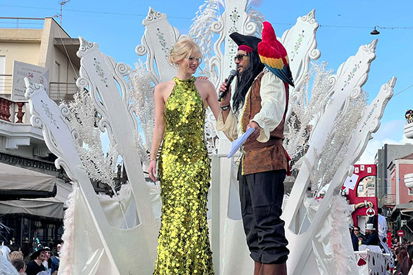 Την έναρξη της παρέλασης σήμανε πανηγυρικά ο βασιλιάς Καρνάβαλος, ενώ ακολούθησε η βασίλισσα του καρναβαλιού, η 18χρονη Άρτεμις Σακέτα, η οποία με τη λαμπερή παρουσία και τη φαντασμαγορική της στολή συγκέντρωσε τα βλέμματα και καταχειροκροτήθηκε.