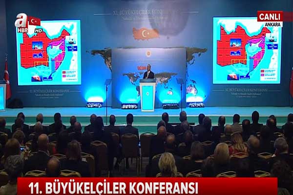 Πρόκληση Τσαβούσογλου: Παρουσίασε χάρτη με την τουρκική υφαλοκρηπίδα να φτάνει μέχρι την Κρήτη