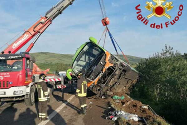 Ιταλία: Λεωφορείο έπεσε σε γκρεμό προσπαθώντας να αποφύγει οχήματα που είχαν συγκρουστεί – Ένας νεκρός, 14 τραυματίες