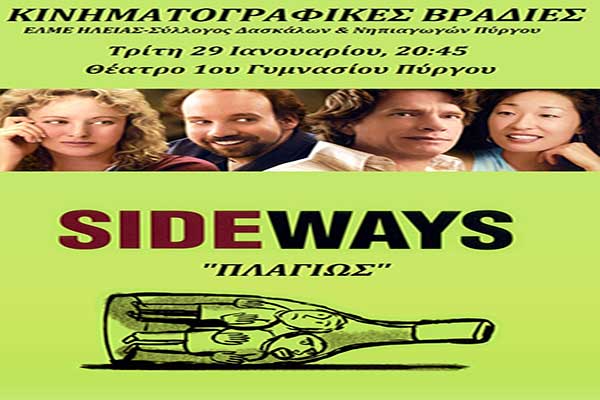 Κινηματογραφικές Βραδιές: Σήμερα η προβολή της ταινίας "Sideways" στο 1ο Γυμνάσιο Πύργου