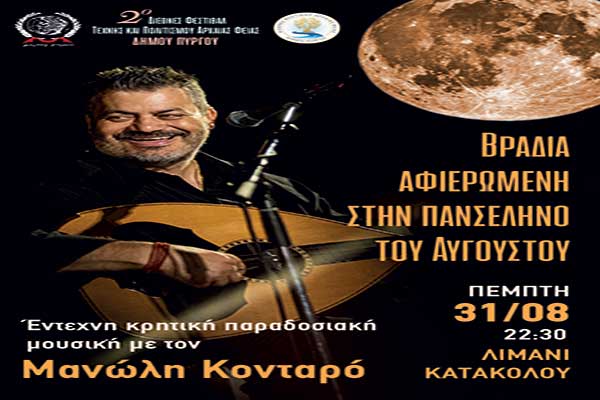 2ο Διεθνές Φεστιβάλ Αρχαίας Φειάς: Αυλαία με Μανώλη Κονταρό στο Κατάκολο με Πανσέληνο