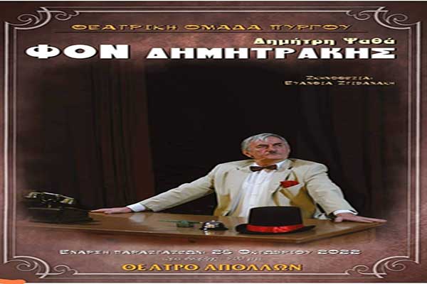 Θεατρική Ομάδα Πύργου: Τελευταία εβδομάδα παραστάσεων για το "Φον Δημητράκης" στο Θέατρο Απόλλων