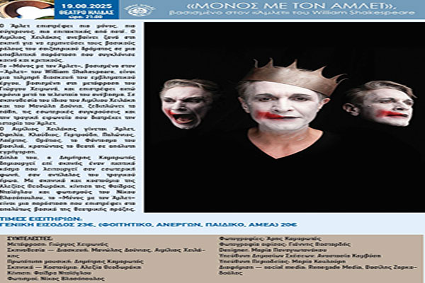 «Μόνος με τον Άμλετ» ο Αιμίλιος Χειλάκης, στην τελευταία παράσταση για το 2025 του Φεστιβάλ Αρχαίας Ήλιδας