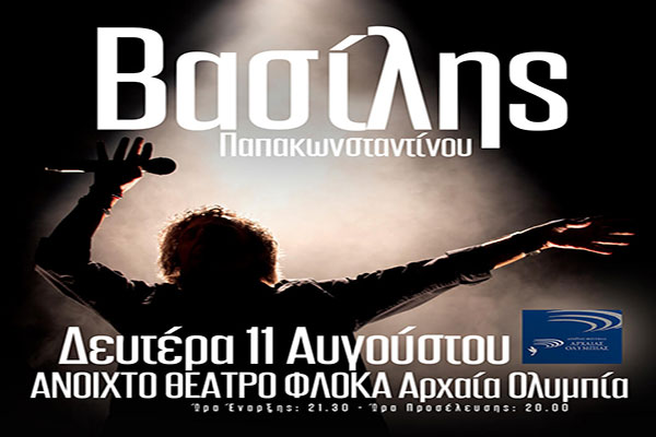 Διεθνές Φεστιβάλ Αρχαίας Ολυμπίας: Ο Βασίλης Παπακωνσταντίνου στο Θέατρο «ΟΛΥΜΠΙΑ» Φλόκα την Δευτέρα 11 Αυγούστου