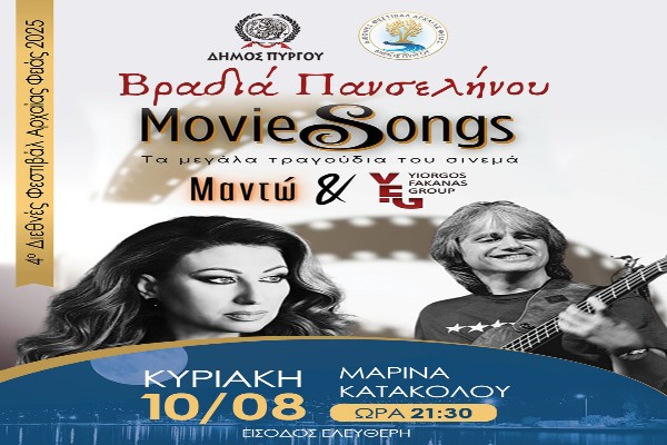 Η γνωστή τραγουδοποιός Μαντώ (Αδαμαντία Σταματοπούλου), με συναυλίες σε όλο τον κόσμο, έρχεται για πρώτη φορά στον Πύργο, καλεσμένη του Δήμου. Θα εμφανιστεί την Κυριακή 10 Αυγούστου στις 21:30 στη Μαρίνα Κατακόλου. Μαζί της, ένας από τους σημαντικότερους ηλεκτρικούς μπασίστες της τζαζ, ο Γιώργος Φακανάς.