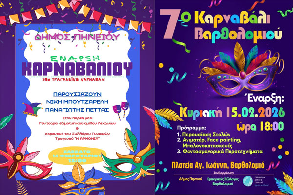 Ο Δήμος Πηνειού σε αποκριάτικους ρυθμούς - Αυλαία για τις εορταστικές εκδηλώσεις σε Τραγανό και Βαρθολομιό