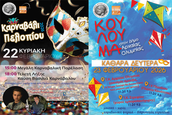 Καθαρά Δευτέρα 23 Φεβρουαρίου 2026 | Κούλουμα στον Δήμο Αρχαίας Ολυμπίας