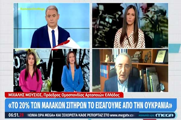 «Η τιμή των αλεύρων έχει εκτιναχθεί μέσα σε λίγες εβδομάδες» είπε στο Mega ο πρόεδρος Ομοσπονδίας Αρτοποιών Ελλάδος, Μιχάλη Μούσιος. «Οι πρώτες παράλαβες των μαλακών σιτηρών την προηγούμενη εβδομάδα ήταν έως και 60% επάνω. Το μικρό τσουβάλι από 13 – 15 ευρώ που ήταν παλιά, ξεπέρασε τα 22 ευρώ» πρόσθεσε.