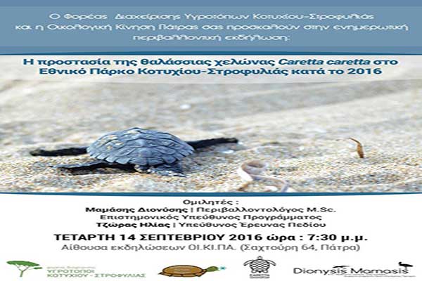 Σήμερα η Περιβαλλοντική ενημερωτική εκδήλωση “Η προστασία της θαλάσσιας χελώνας Caretta caretta στο Εθνικό Πάρκο Κοτυχίου-Στροφυλιάς”