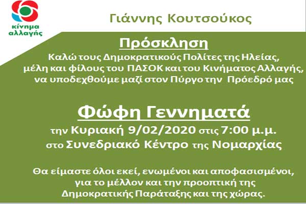 Γιάννης Κουτσούκος: Πρόσκληση για την επίσκεψη της Φώφης Γεννηματά στον Πύργο