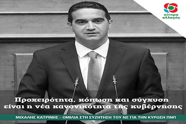 Μιχάλης Κατρίνης: «Προχειρότητα, κόπωση και σύγχυση είναι η νέα κανονικότητα της κυβέρνησης»
